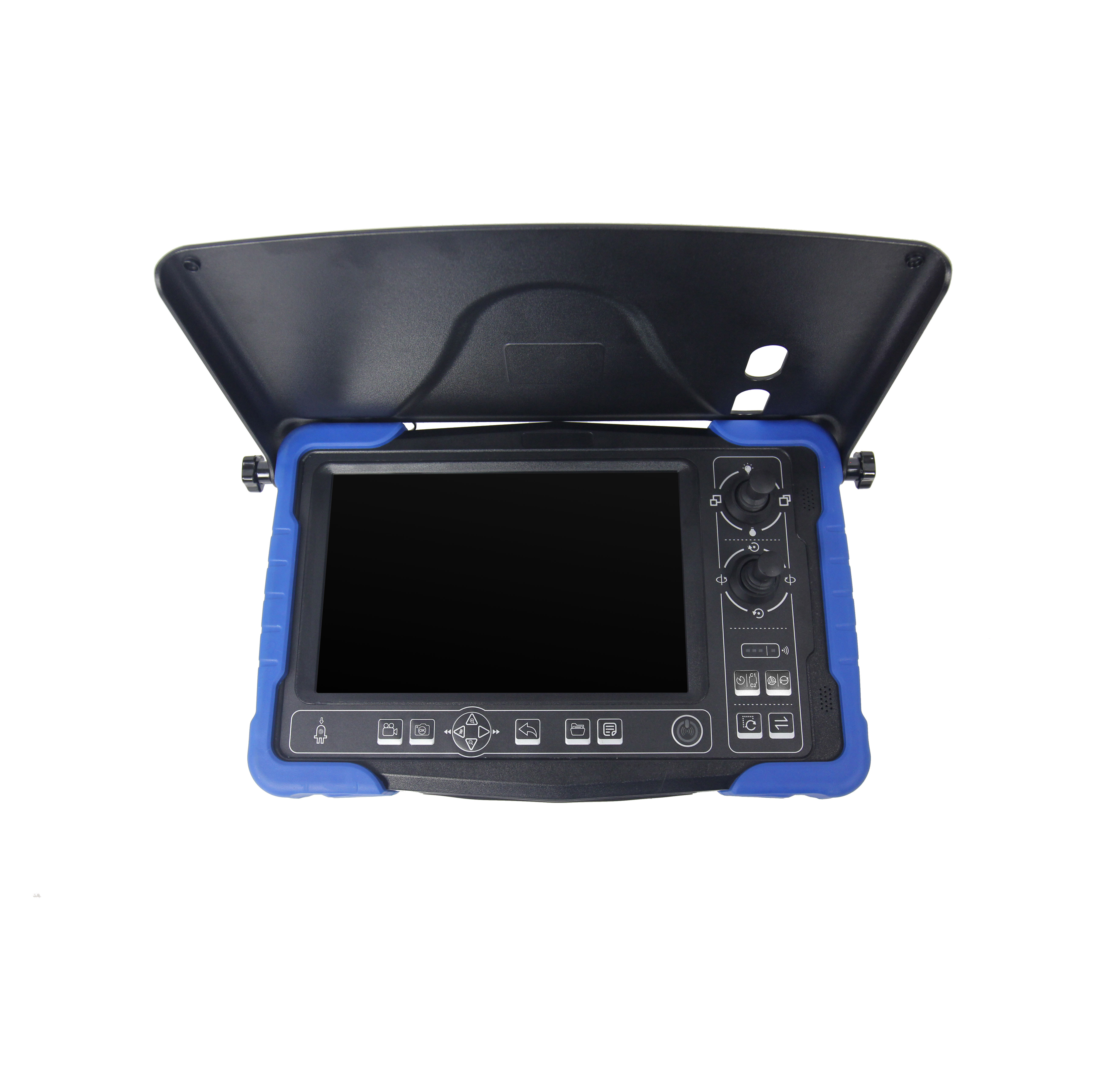 Repuesto de monitor para sistema WPS-FH4, compatible con cámaras HD de inspección de tuberías con rotación 360° o cabezal con auto nivelación. Permite visualización en tiempo real, grabación y conexión AHD/CVBS para operación en terreno.